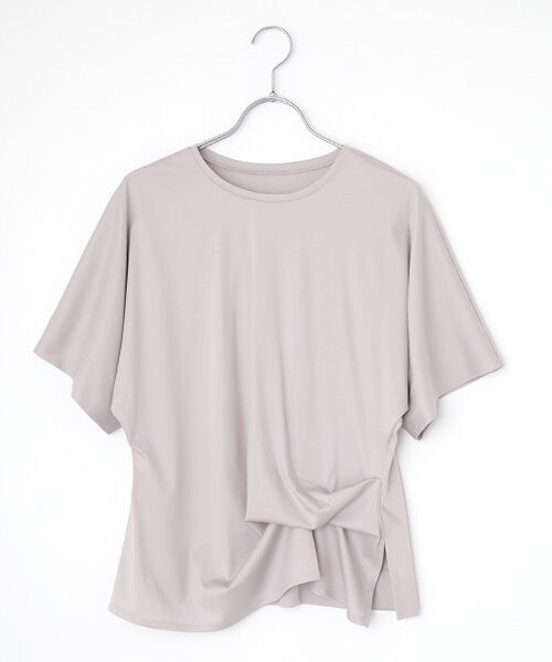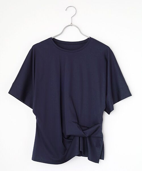 ウエスト部分に、アシンメトリーにタックデザインが入ったトップスです。カジュアルになり過ぎず一枚で決まるデザインTシャツです。<素材>(スーピマコットンとは・・・コットン素材は、その繊維の長さ(繊維長)が長い程、高級であると見なされます。特に繊維長が35mm以上であるものを超長綿といい、高級コットンとされています。スーピマコットンとはアメリカ産の最高級コットンです。)超長綿で編んだハイゲージスムースです。超長綿を使用した生地はシルクのような光沢や上質な風合いを持っており、一般的な綿に比べて一線を画します。また、コンパクトな目面を更に後加工で極限まで毛羽を削ぎ落とし、上品な光沢を表現しました。