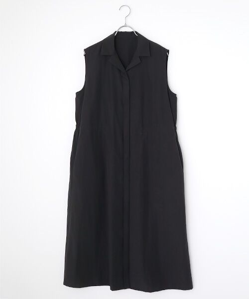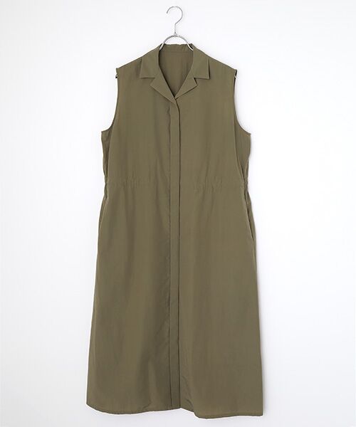 スタイリッシュなノースリーブシャツワンピースです。すっきりとした襟付きのデザインでウエストの両サイドからバックにかけてのゴム切り替えがスタイルアップ効果を演出してくれます。羽織りやジレのような着こなしもでき、コーディネートの幅が広がるワンピースです。<素材>ドライタッチなナイロンにコットンを合わせた高密度素材。ナイロンならではの発色は色を綺麗に見せてくれます。タンブラー加工により、繊維をリラックスさせ適度なハリ感とナイロン特有のシボ感のある表情を付与しました。