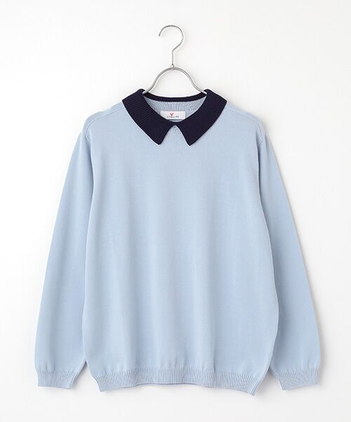 フェミニンながらもトラッドな印象を与えてくれる襟付きのニットトップスです。シルク混の上質な糸でしっかりと編んでいるため、体の線を拾わず一枚でさまになります。配色の襟には異なる編み地を使用しており、ニットならではの見え方がポイントです。スカートはもちろんパンツとのコーディネートもおすすめです。<素材>天然繊維である綿とシルクを混紡する事により肌触りが良く、吸水性や通気性、保温性に優れています。また、シルクを混ぜる事により糸に上品な光沢感が出ます。