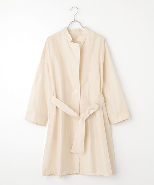上品な透け感が魅力のシルクコットンオーガンジーを使用しています。ミドルレングスで肩をドロップさせ、袖や身幅にボリュームを持たせることで、抜けのある今年らしいムードに仕上げています。<素材>シルクオーガンジー糸ととても細いコットン糸を使って織り上げた素材です。シルクの滑らかさと上品な光沢、またオーガンジーならではのハリ、軽さが特徴です。繊細な素材のため、目寄れ(織組織の方寄り)や糸引き、破れになりやすいので、スレや引っ掛かりにご注意ください。強い力が加わると縫い目が開くことがあります。