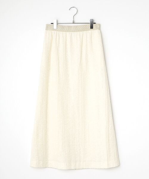 天然素材のまま無染色に拘ったサマーツイードのスカートです。女性らしいスッキリとしたシルエットで仕上げています。印象に残る素材感で、どんなトップスにも合わせやすく様になる一着です。<素材>無染色にこだわり、素材が本来持つ風合いや色味を活かした素材です。※生成り・無染色のため、製品個々に色調が異なります。素材特性ですのでご了承ください。※風合いを重視した素材により、打ち込みがゆるく縮率が悪いため、ドライのみでお願いします。※無染色により耐光が悪いためご注意ください。