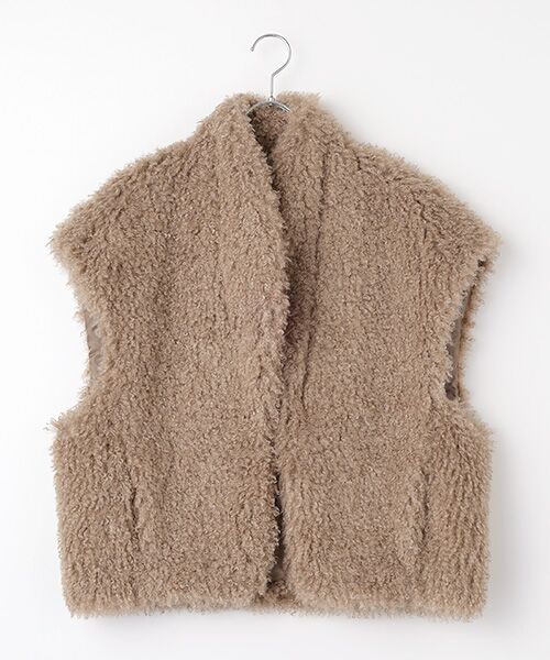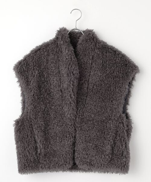 ボリュームのある襟元と短めの丈が新鮮なファーのジレです。長めの巻き毛でミニマルな可愛らしさがありながら大人女性にぴったりな洗練された華やかな雰囲気で着て頂けます。<素材>生地の表と裏両方からニードルパンチをかけたファー素材です。腰を砕きソフトな風合いに仕上げる事で、肌触りの良さを高めています。また、毛足にクリンプをかける事で表情感も豊かになっており、高級感がありながらも抜け感を兼ね備えた素材です。