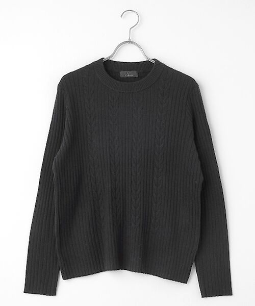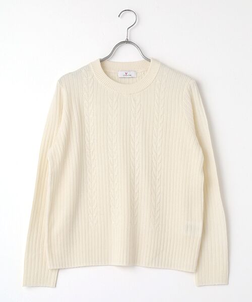 ワイドリブをベースにケーブルをさりげなく入れ込んだ大人のハイゲージケーブルニットです。程よい肉感で軽さをだしているため、ブラウスと合わせたり、さらっと一枚で着用したりと幅広く着用していただけます。長すぎない着丈や程よい開きのクルーネックに仕上げているため合わせるボトムスを選ばない女性らしいニットです。<素材>梳毛糸と紡毛糸の間の様な風合いのセミ梳毛糸。軽くて膨らみがあり暖かみのある素材になります。