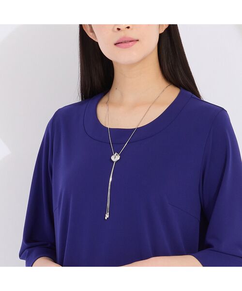 着こなしに煌めき感をプラスしてくれるシルバーのネックレス。女性らいいハートのモチーフが愛らしい。