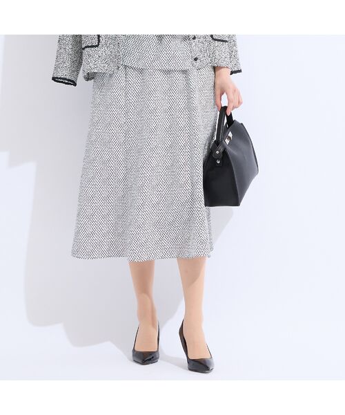 同素材のブラウスやジャケットとセットアップで着用すればよりきちんと感のあるスタイルに。無地のブラウスやきれいめカットソーと合わせてオフィススタイルにもおすすめです。