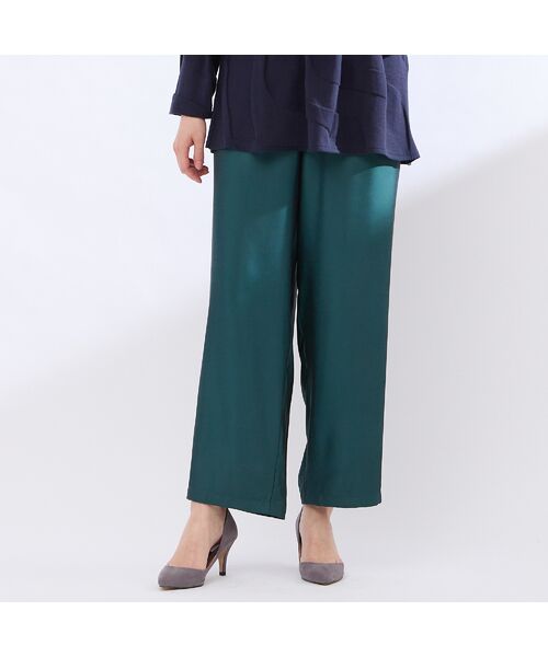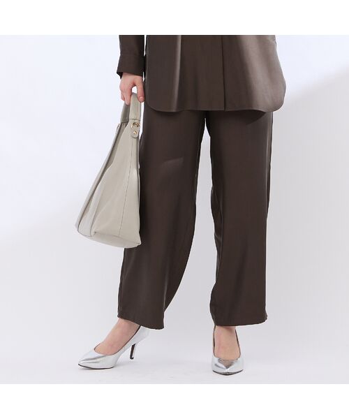 軽やかなキュプラ混のパンツ。微光沢感が品よく、こっくりとした色合いもこれからの季節にぴったり。