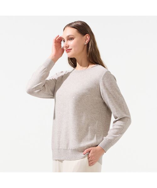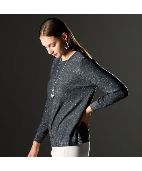 美しい光沢感を放つラメと小さなスパンコール入りの糸を使用したニット。繊細で上品なきらめき感が上品なニットです。