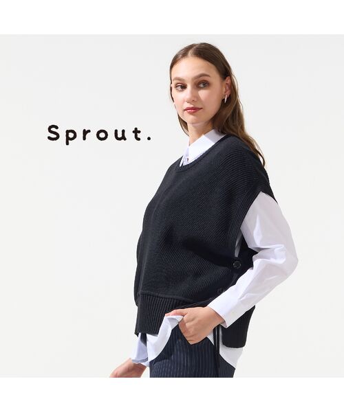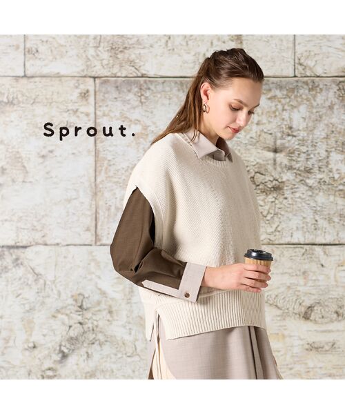 綿混素材のプルオーバーニット。両サイドは釦あきで着脱も便利。