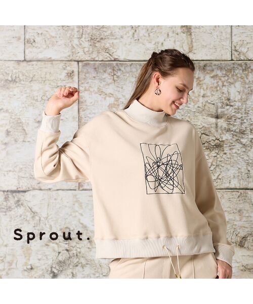 胸元には幾何柄の刺繍を入れてアクセントに。カジュアル中にも手の込んだ大人スウェット。