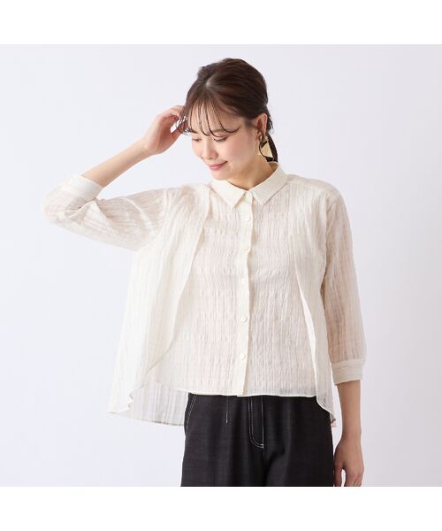 上品な透け感が大人っぽく涼し気なシアーチェック。同色の濃淡で表現している為落ち着きのある印象で着られます。