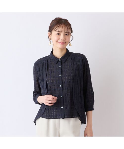 ドライな質感と上品な透け感、清涼感がポイントのチェック柄。サッカー調の凹凸感がありしわも気になりにくい。ドライタッチで暑い季節にもおすすめのアイテム。