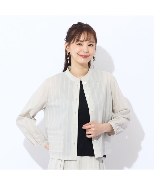 ブラウス感覚でさっと着られる軽やかな羽織りもの。ジャケットほど堅苦しくなく、カーディガンよりもややきちんと感があります。薄手素材でも長袖なので冷房の効いた室内でも頼りになります。