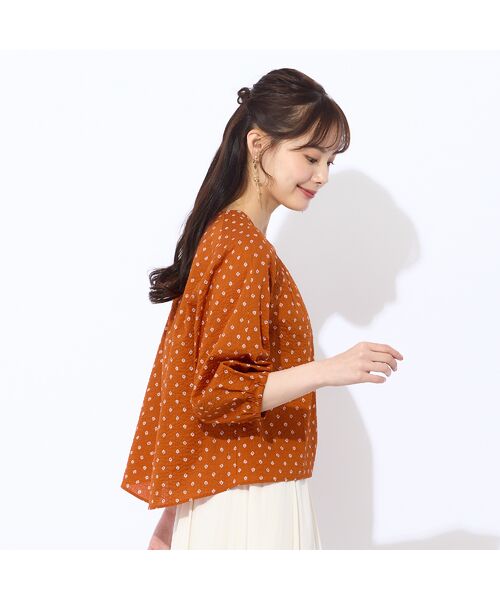 小紋調のかわいらしいプリントを載せた素材。体型を拾いすぎないコクーンシルエット。ふんわりと柔らかなラインがかわいらしい。