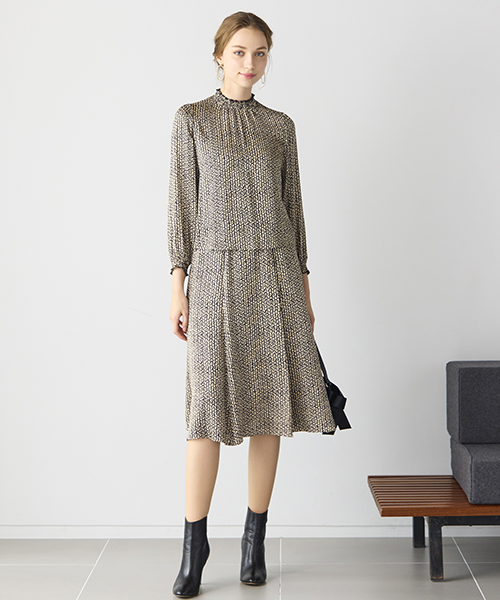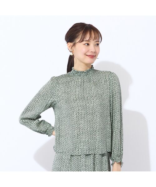 女性らしいディティールをアクセントにしたエレガンスブラウス。甘いディティール×大人っぽいプリントで程よく上品に仕上げています。