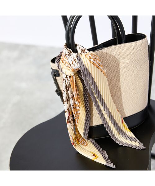 シンプルなニットの衿元、コートの衿元に。またバッグに軽く結んでもお洒落。