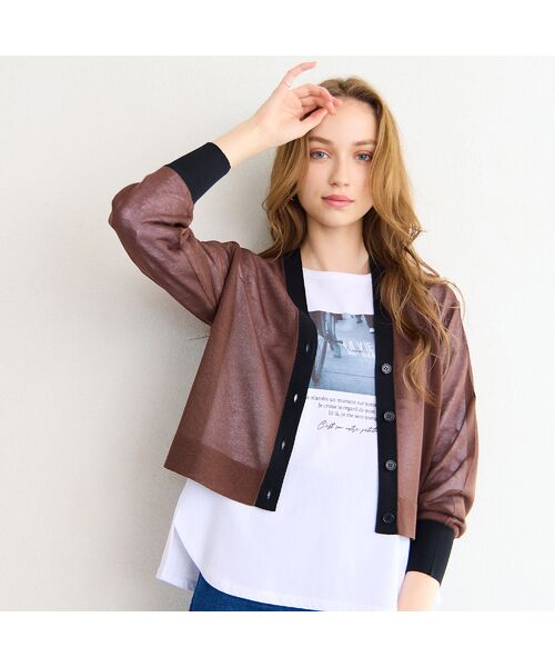 程よいシアー感が涼し気なニットカーディガン。バイカラー使いもオシャレ。