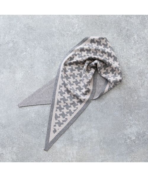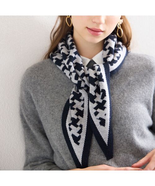 幾何柄模様のニットストール。ニットのため馴染みよくあたたか。