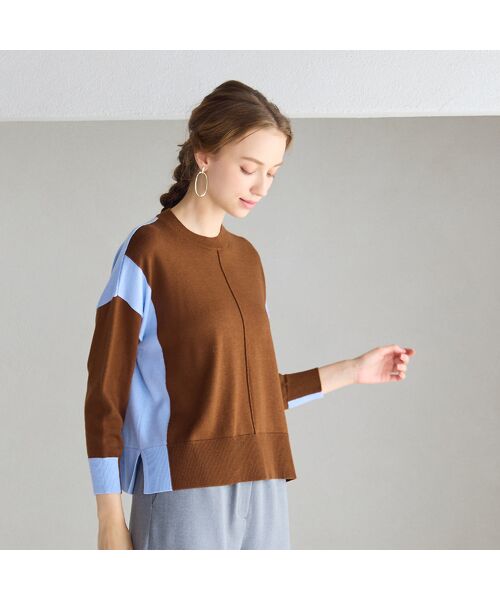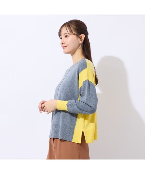 サイド・後を配色使いしたニット。柔らかな色使いで秋冬だけでなく梅春にも活躍しそう。