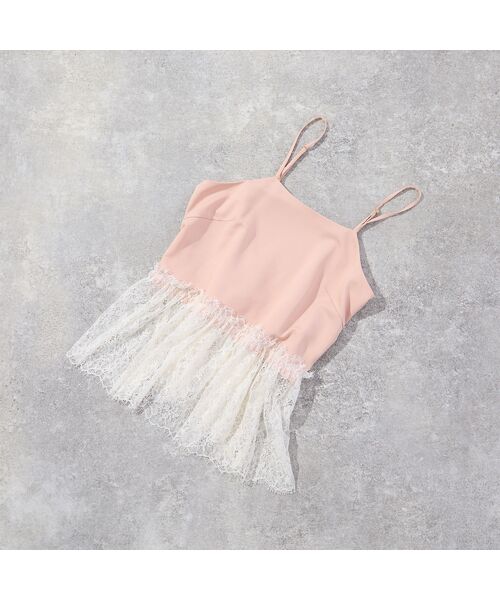 トレンドの着こなしにお勧めのレイヤードキャミソール。裾部分はレースをたっぷり使用した女性らしく可愛らしいアイテム。