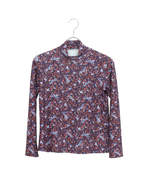多色感のある小花プリントがかわいらしい雰囲気のインポート素材Tシャツ。花プリントに「LOVE」やハートの模様が描かれた愛にあふれたプリント。