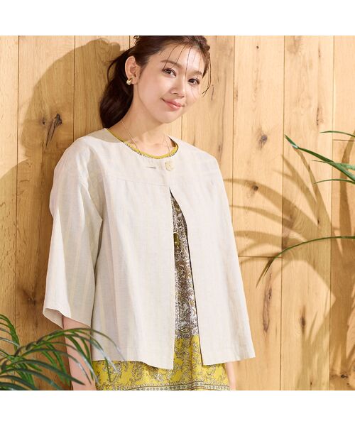 チュニックやワンピースにボレロ感覚で羽織ったり、同生地のパンツとのセットアップスタイルも素敵です。