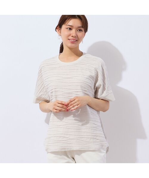 ボーダー状のタックジャカードで表情感があり、一枚でこなれ感を演出できるプルオーバーとなっております。