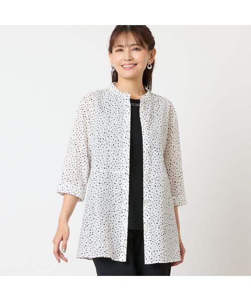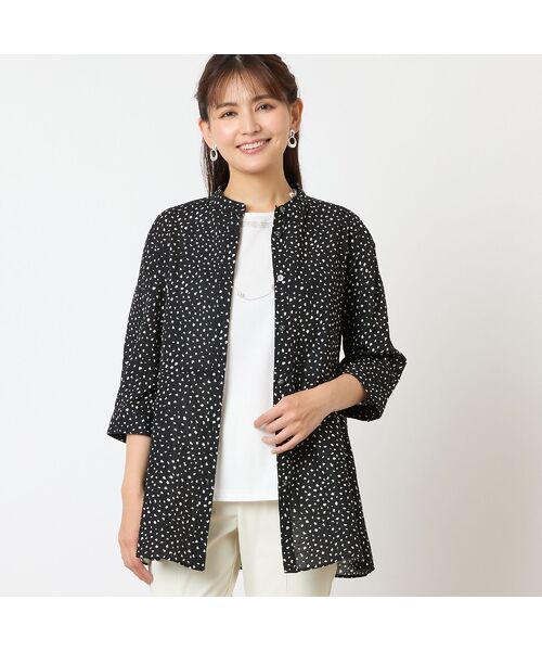 手描き風の甘さのあるドット柄が可愛いシャツ。
