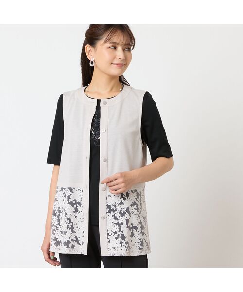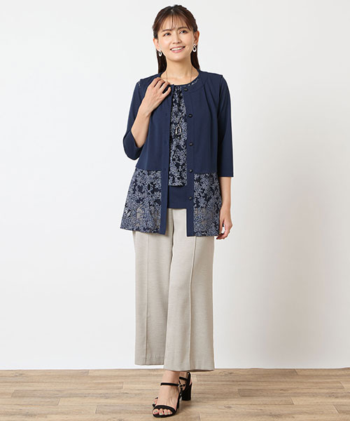 裾部分は花柄の透かし柄になっており、レイヤードスタイルに涼し気な印象を与えてくれます。