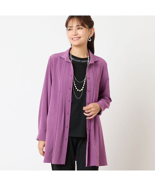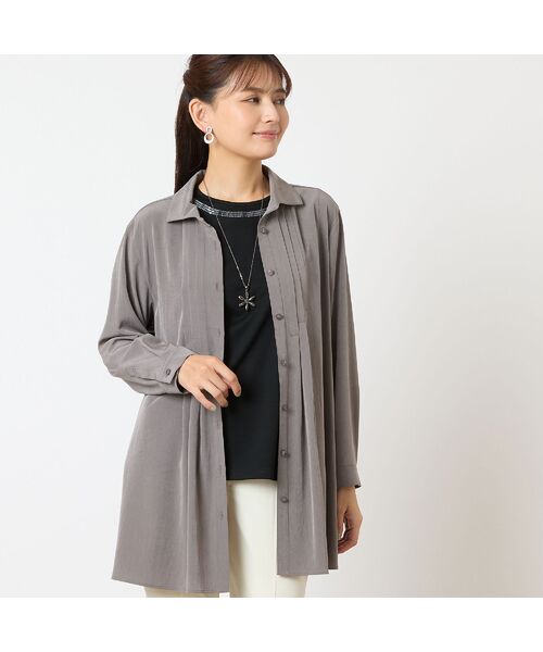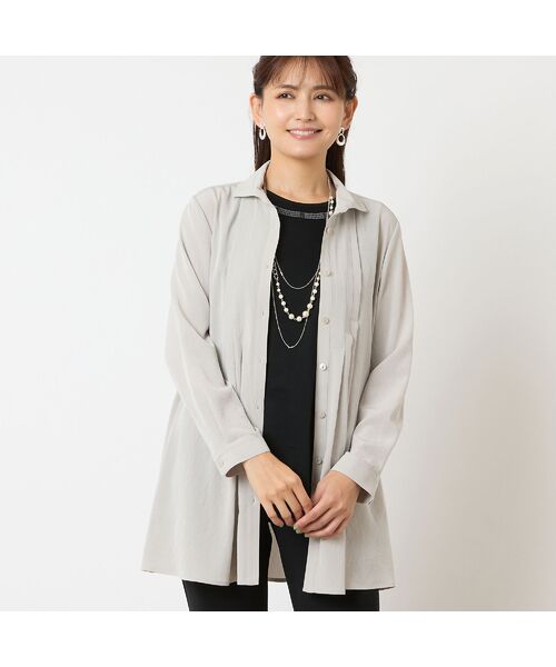 胸元のピンタックが華やかなシャツは、暑い日の羽織りとして活躍間違いなし。