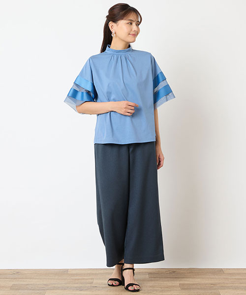 上品な透け感とフレアスリーブで二の腕を可憐にカバーします。