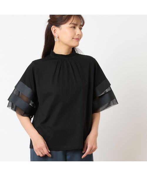 袖はメッシュ地にグログランリボンを付けた甘さのあるデザインです。