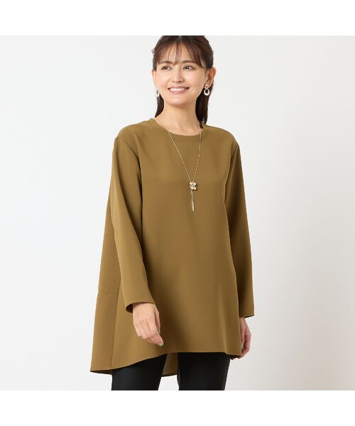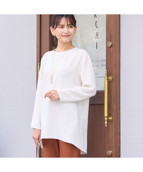 後ろ丈がしっかりと隠れるチュニック丈で安心感があり、パンツスタイルに自信が持てる1着です。