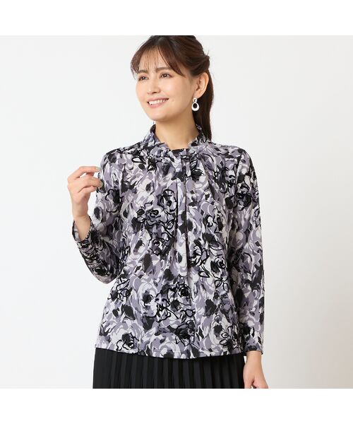 薄手で柔らかい風合いのチュールに、深みのある花柄をプリントしたカットソー。