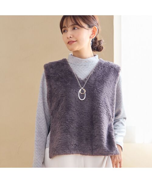 フロントに柔らかいタッチのフェイクファーを使ったベストです。