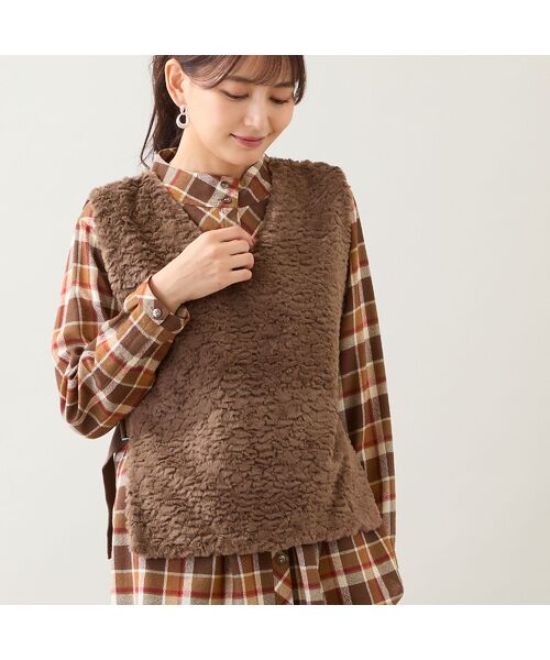 ◆重ね着が楽しくなる!ふわふわのフェイクファーが可愛いベスト◆