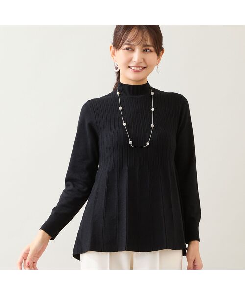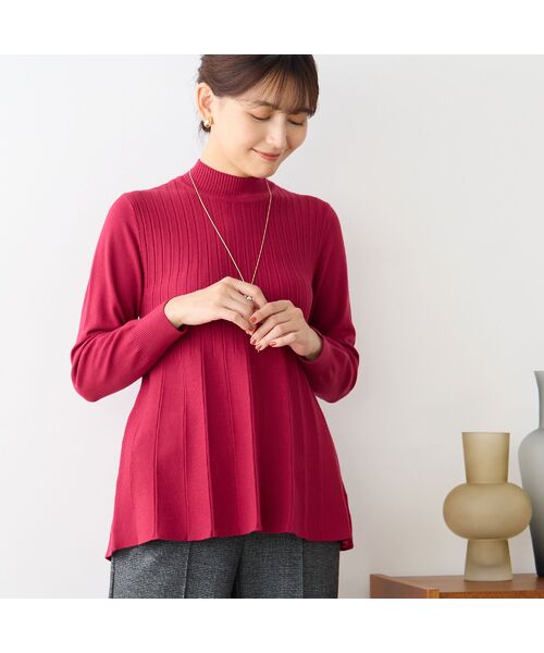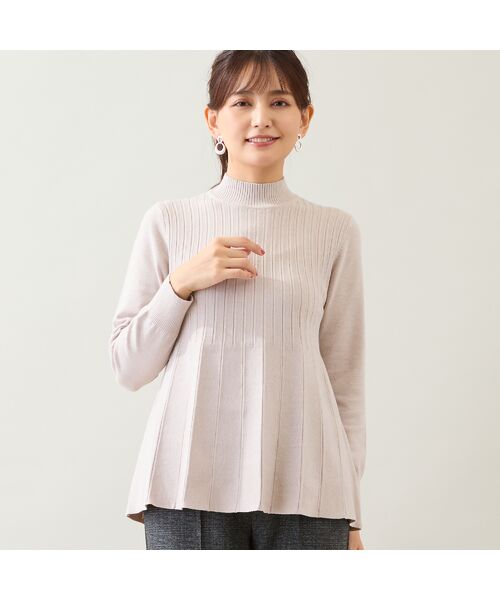 胸元はリブでスッキリとしており、裾にかけてリブ幅を広く編んだ女性らしいシルエットが魅力です。
