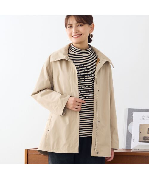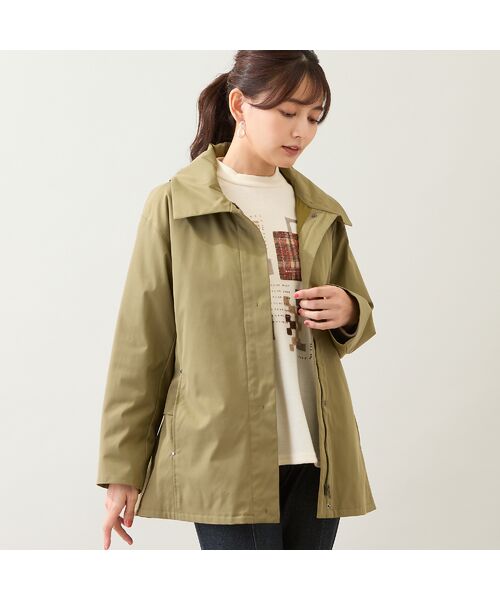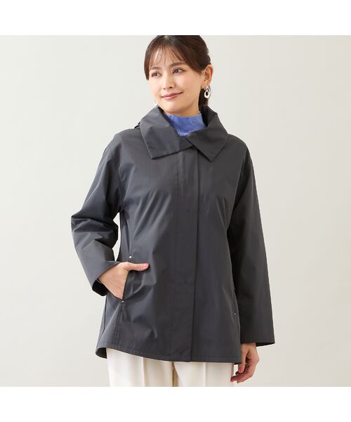 大きめの襟が華やかで、襟の後ろにあるドットボタンを外せばフードが出てくる2WAY仕様。