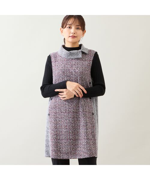 ◆品よく楽しめるツイード柄のロングベスト◆