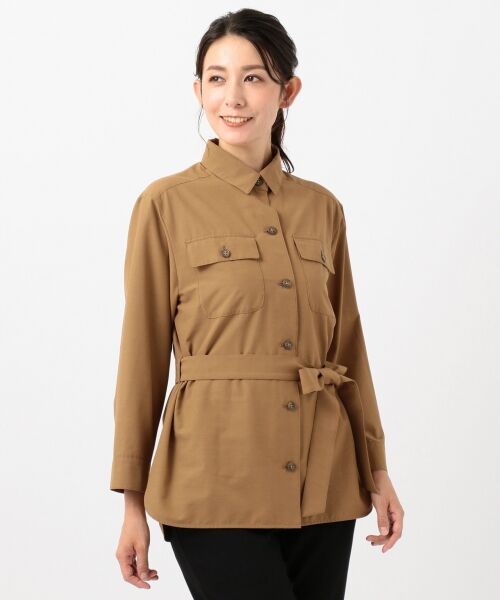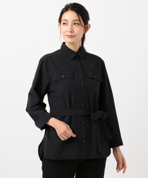 エレガントな雰囲気漂うトレンドCPOシャツ■デザイン 軽い羽織としても着用できるトレンドのCPOシャツ。胸元にフラップポケットをつけているのが特徴です。 肩を落として、抜け感を出し、リラックス感のあるシルエットに仕上げました。共布リボン付きで、結んだスタイルがおすすめです。長袖。裏なし。■素材ご自宅でのお洗濯も可能なポリエステルメインの素材です。キュプラとの混合素材です。一般的にキュプラは薄手のブラウス素材に使われている事が多いですが、あえてしっかりした素材に使用することで、エレガントなしなやかさを表現しています。※商品画像はサンプルを使用しているため、色味やサイズ等の仕様に変更がある場合がございますので、予めご了承ください。