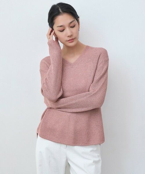 【洗える】 ペーパーブレンドシャインニット Vネックプルオーバー