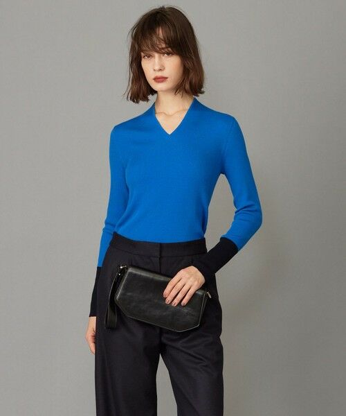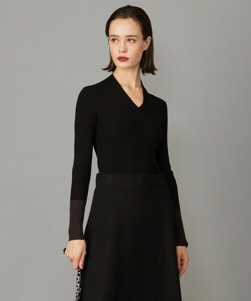 ■デザイン毎年人気のVネックプルオーバーの袖にモードな配色を加えたデザインが期間限定で登場。首に沿ったV開きがすっきりと上品に見せてくれます。ボディーラインを拾いすぎないシルエットで、ぴったり目なハイゲージニットが苦手な方にもオススメです。一枚ではもちろん、ジャケットやアウターのインナーとしても重宝する着回し力抜群のアイテムです。