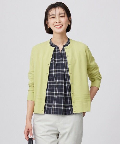 ■デザイン清涼感のある、ベーシックなデザインのクルーネックカーディガン。袖口と裾に入っている編柄がアクセントになっており、同素材アイテムのニットプルオーバーとのアンサンブル着用もおすすめです。真夏までに快適にさらりと着用できて、気軽に羽織りやすいシンプルなデザインなので、休日のお出かけからオフィスシーンまで幅広く活躍するニットカーディガンです。