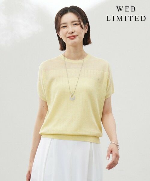 ■デザイン程よい透け感がアクセントのストライプニット。ニットならではの編地切替が、シンプルながらも存在感のある1枚に仕上がっています。同素材のカーディガンを羽織れば、統一感のあるアンサンブルスタイルが完成。コーディネートの印象を損なうことなく、気分やシーンに合わせた着こなしを楽しめます。さらに、さりげなく気になる二の腕をカバーしてくれるのも嬉しいポイント。シンプルながらも計算されたデザインが、大人の余裕を魅せるベーシックアイテムです。