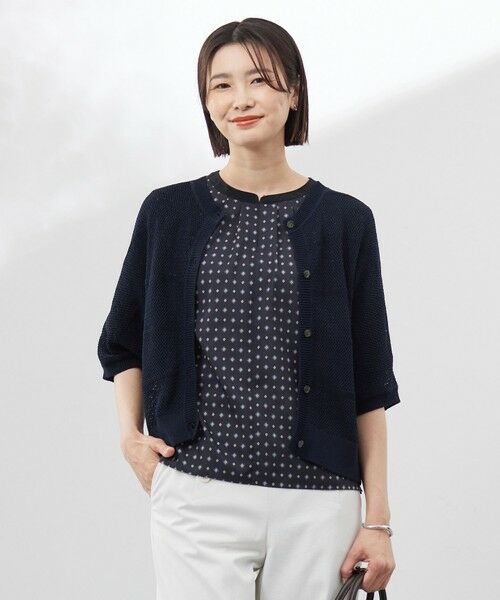 ■デザイントレンドのメッシュ編みのドルマンスリーブカーディガン。軽やかな透け感が魅力で、夏にはタンクトップやノースリーブと、肌寒い時期にはロングスリーブと合わせるなど、様々な着こなしが楽しめます。コンパクトな丈感はワンピースとの相性も抜群。ゆったりとしたドルマンスリーブが気になる二の腕をさりげなくカバーし、5〜6分丈の袖が上品な抜け感を演出。羽織るだけでこなれた印象をプラスしてくれる優秀アイテムです。