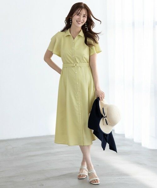 ・綺麗なフィット&フレアシルエットが着映えする・シャツカラーできちんと感を演出・パール調ボタンが涼し気で上品なアクセントに