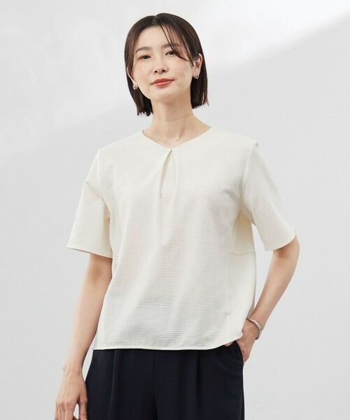 ほのかな広がりが女性らしい、ドライタッチで涼しげな印象のペプラムカットソー