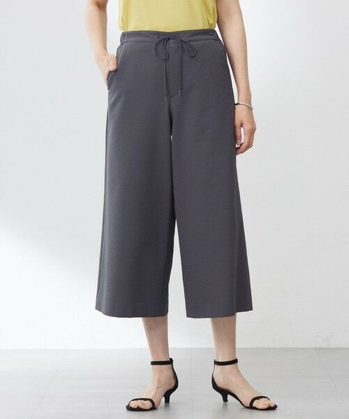 ■デザインカジュアルからきれいめスタイルまで幅広く活躍する、ワイドシルエットのクロップドパンツ。Tシャツと軽やかに合わせれば、リラックスしたカジュアルな装いに、スッキリとしたシャツと合わせれば、きちんと感をプラスした大人なスタイルに仕上がります。絶妙な丈感とシルエットは、大人の女性にぴったりで、トラッドな雰囲気を漂わせながらも日常のどんなシーンにも馴染む頼れる1本です。裏地は付けず、見た目も着心地も涼しげに仕上げました。カラーは、爽やかで落ち着きのある印象を与えるスレート(#004)、こなれ感のあるモカ(#030)、着回しやすい大人なネイビー(#075)の3色展開。