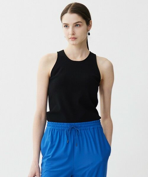 ■デザインアメリカンスリーブでヘルシーな印象のニットタンクトップです。デコルテとショルダーラインを美しく引き立てるカッティング、軽やかなラウンドヘムデザインがスポーティーな印象をプラス。カップ付で一枚で着用できるのも嬉しいポイントです。