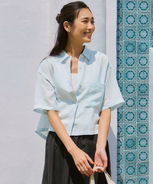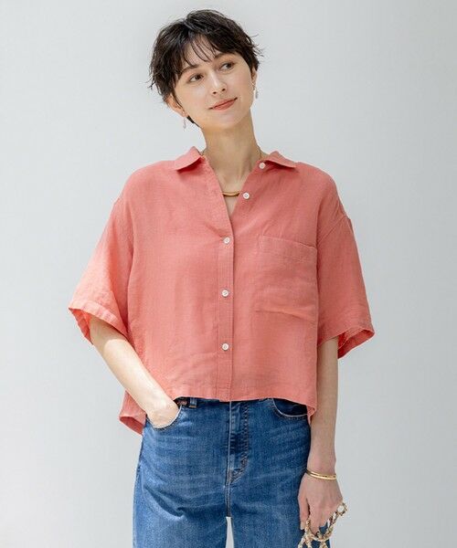 バランスよく着こなせる、クロップド丈のリネンシャツ