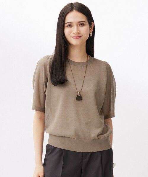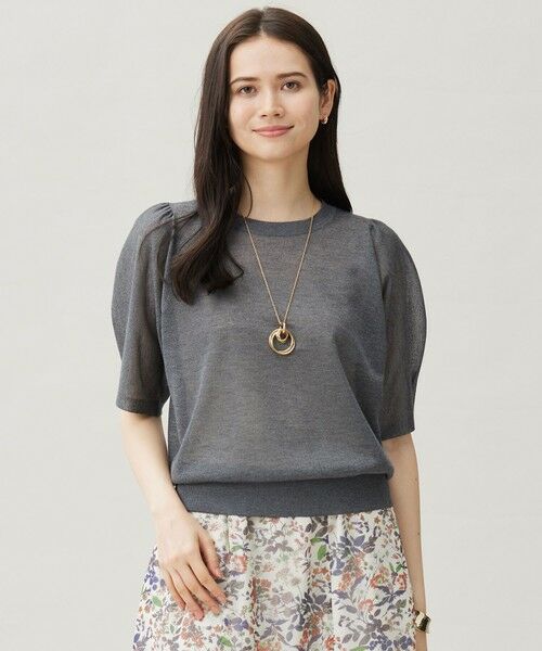 袖のボリューム感と繊細な煌めきが女性らしいプルオーバーニット■デザイン繊細なギャザーを入れたふわっと膨らむ袖が、華やかで女性らしい印象のプルオーバーニットです。シアー素材を使用しているので、ボリューム感のある袖も暑苦しくなく、涼しげな印象で着て頂けます。ややコンパクトな身頃のサイズ感なので、ワイドなボトムと合わせて着て頂くのもおすすめです。■素材程よいハリコシと心地よい清涼感、ブライト糸ならではの繊細な煌めきのある表情が華やかな素材です。暑い夏にも着て頂きやすいシアー感のある素材になっております。■同素材アイテムカーディガン(KRWRGA0053)